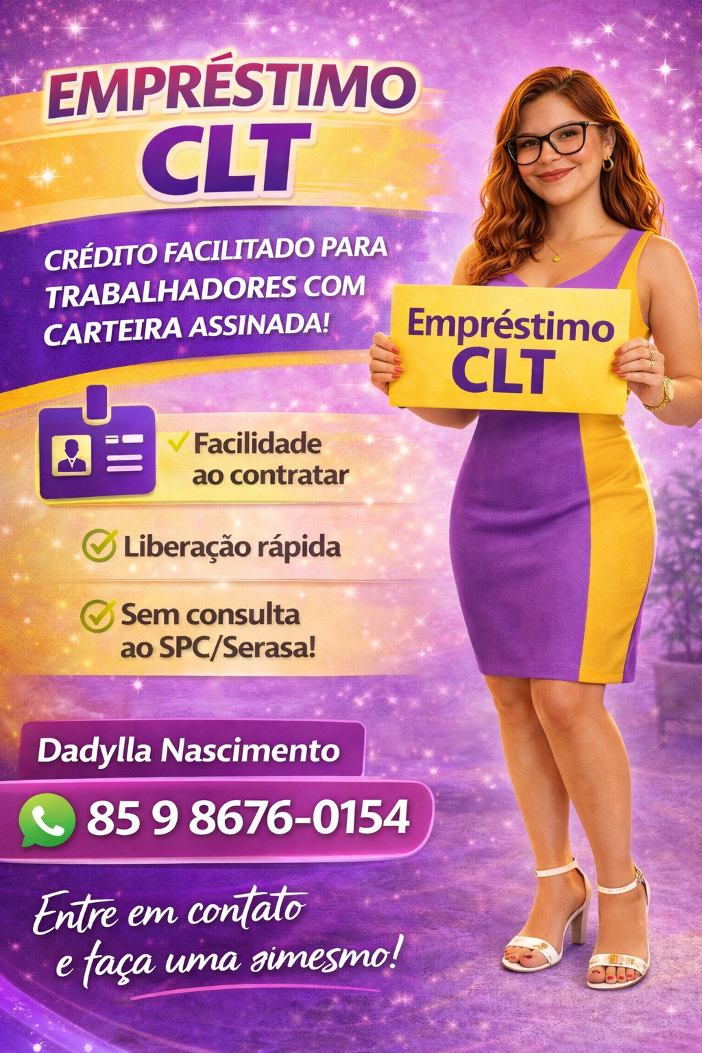 Trabalhamos com diversas opções de crédito para encontrar a que melhor se encaixa no seu perfil. Temos empréstimo no cartão de crédito, consignado, saque do FGTS, conta de luz e muito mais. Cada modalidade tem regras e vantagens diferentes. Fale conosco e faça uma simulação sem compromisso.