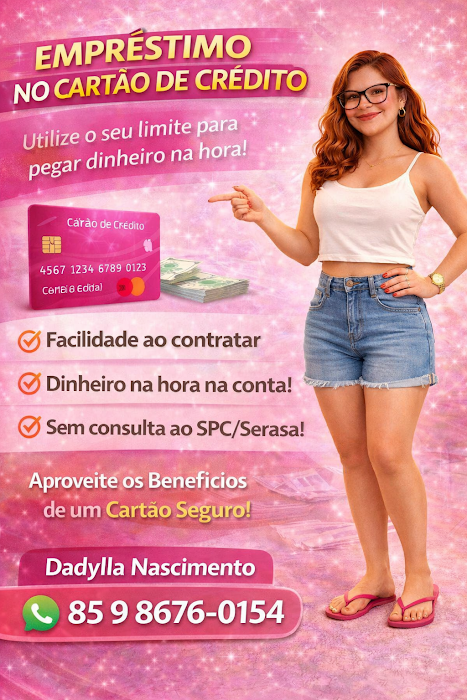 O empréstimo no cartão de crédito permite transformar parte do limite do cartão em dinheiro. O valor é parcelado na fatura do cartão, conforme o prazo escolhido. O cartão precisa ser de crédito, estar no nome do titular e ter limite disponível no momento da contratação. A aprovação depende da análise da financeira.